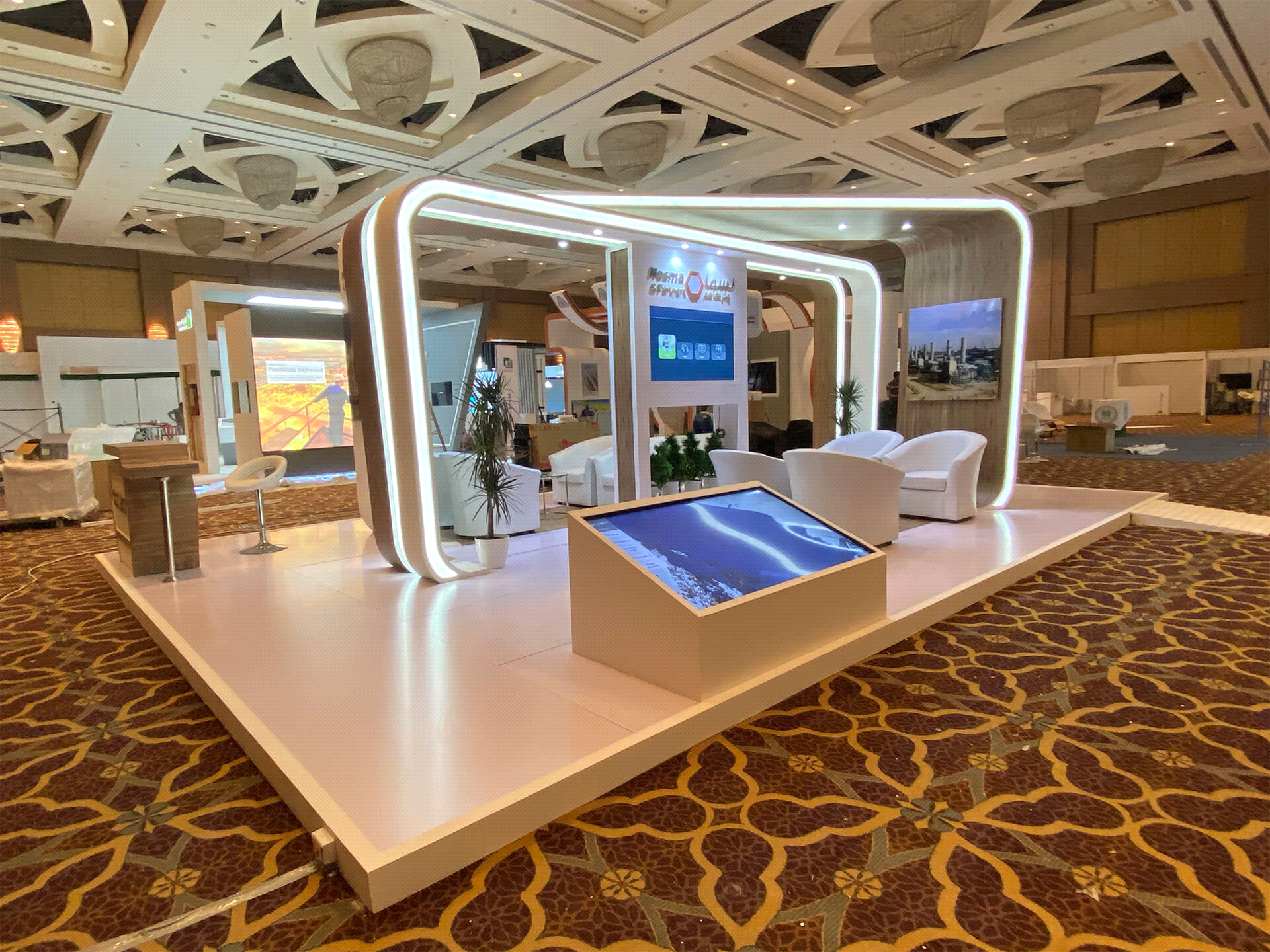 يمثل استخدام التقنيات الحديثة في تجهيز بوثات المعارض تطوراً مهماً لتعزيز تجربة الزوار وجذب الانتباه إلى المنتجات التي يتم عرضها، ومن التقنيات والأفكار الحديثة التي يمكن أن يتم استخدامها في تجهيز البوثات:
